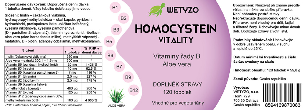 Doplněk stravy Homocystein Vitality s Aloe vera je vhodný pro vegetariány i vegany.